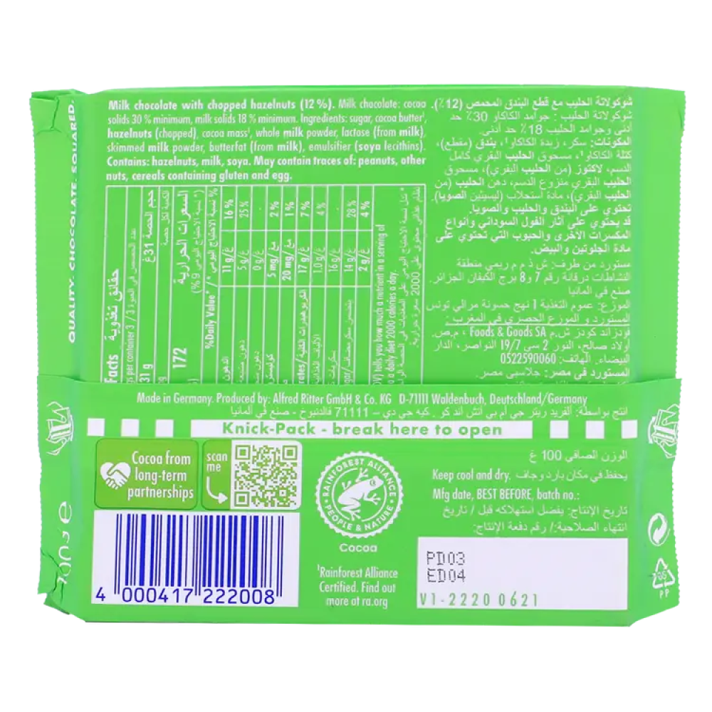 ريتر شوكو بندق مقطع 100 جم