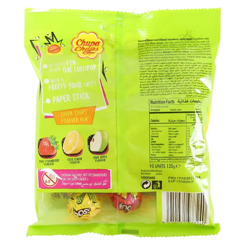 شوبا شوبس حلوى مصاص بنكهة الفواكه الحامضة متنوعة 10 حبات