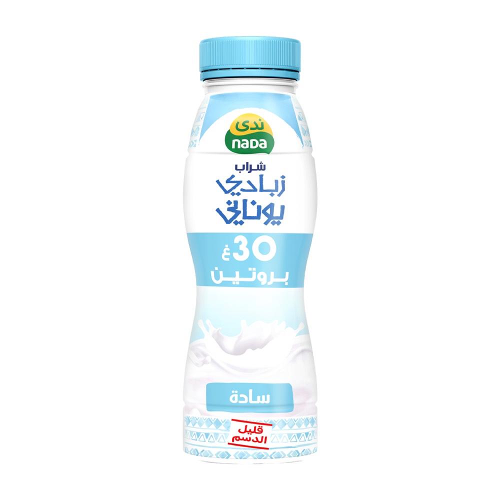 شراب زبادي ندى اليوناني السادة يتميز بقوامه الناعم والكريمي، غني بالبروتين والبروبيوتيك لتجربة صحية وخفيفة.
