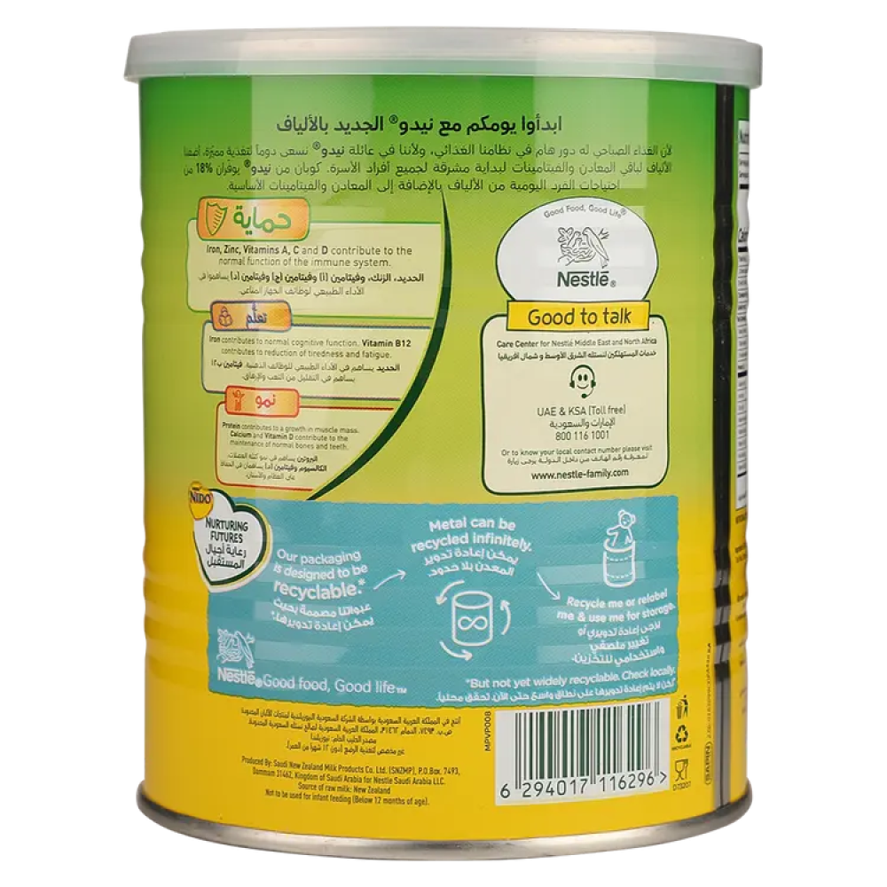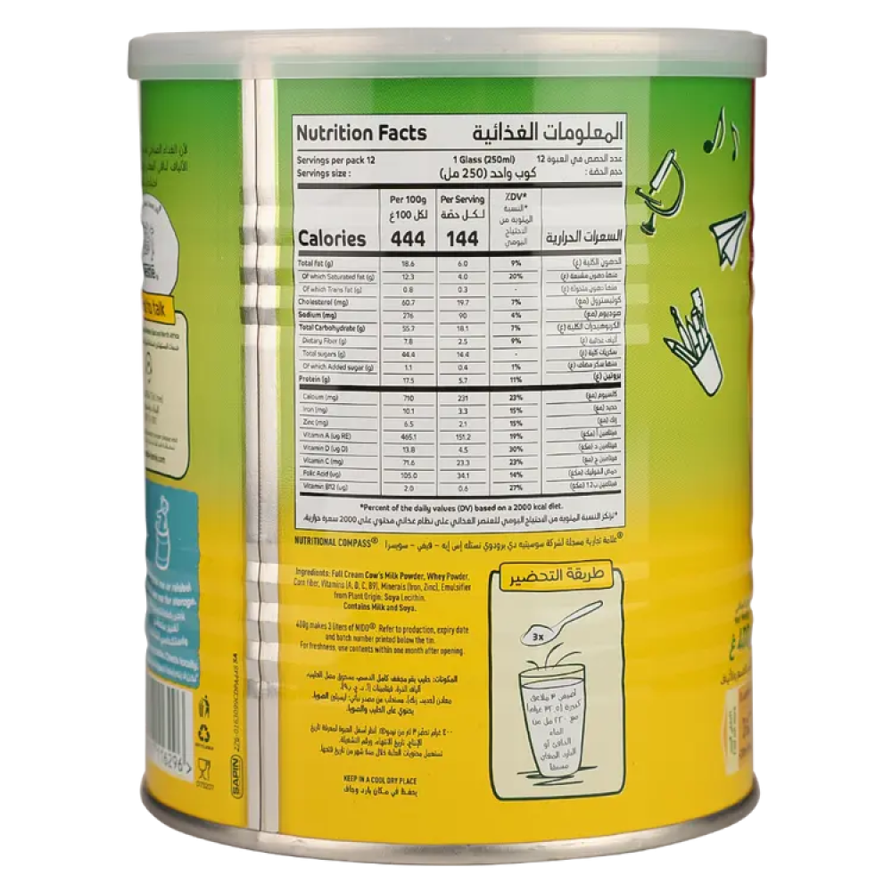 نيدو علبة حليب بودرة كامل الدسم مدعم 400 جم