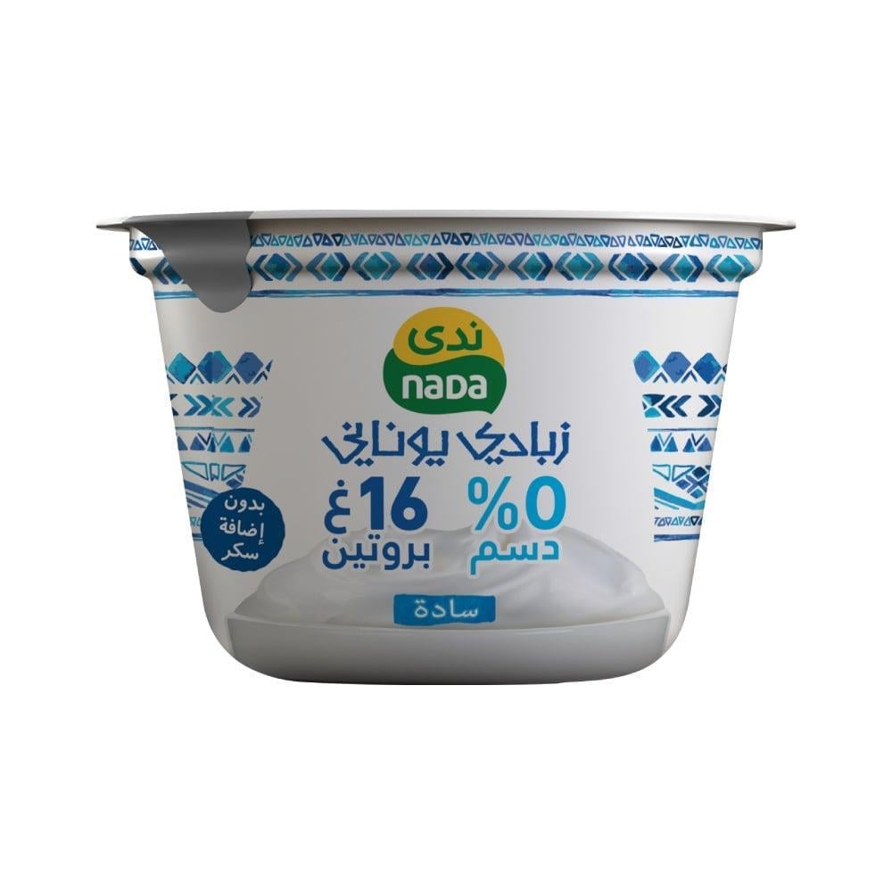 زبادي ندى اليوناني 0% دسم سادة يقدم قوامًا كريميًا غنيًا بالبروتين وخاليًا من الدهون، مناسب لوجبة خفيفة وصحية.